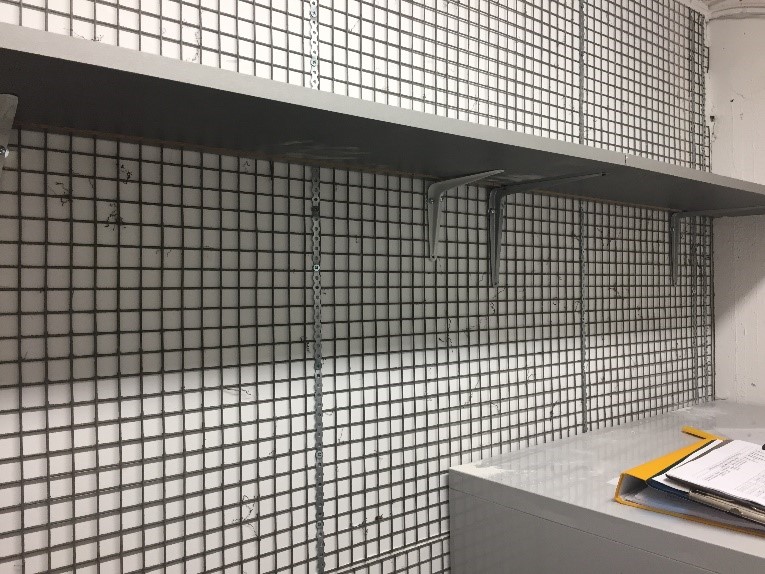 If the room requires the stud walls to be reinforced, ensure that you reinforce all stud walls with metal sheeting or metal mesh as shown below. These examples are not the only types of mesh or metal sheeting that can be used.
